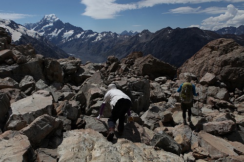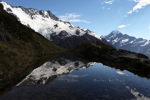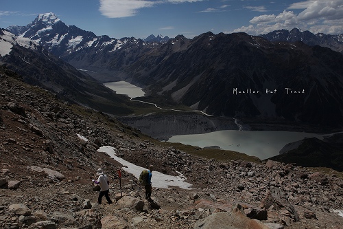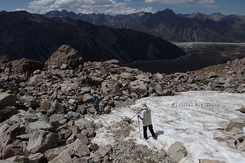 ミューラーハットの中間地点、セアリーターンズ。右側に見える山がマウントクック。