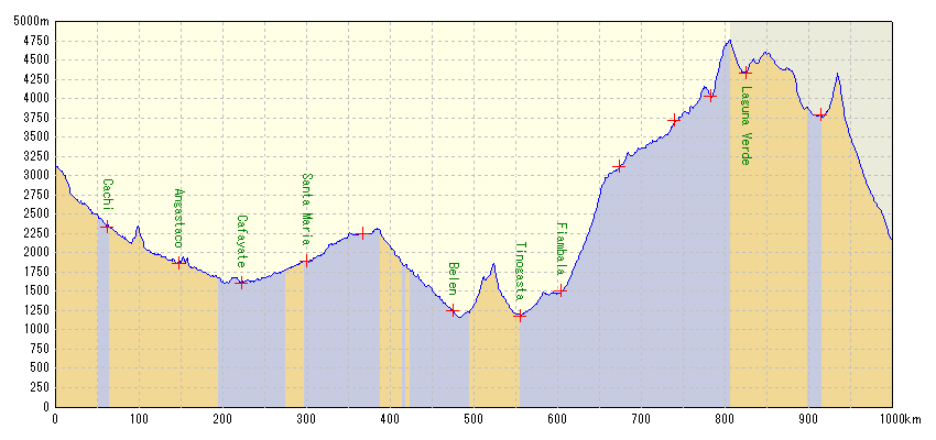 | 自転車旅お勧め度 | ★★★★★ | 道はめちゃくちゃ悪いし補給もままならない、そんな過酷な場所が続くアンデス越え。心身ともに疲れ果てるのだけど、それでもその美しさに魅せられて何度でも峠に挑みたくなってしまう。チャリダーを峠ホリックにさせてくれる魅惑のアンデスは、地球上の数少ないMUST GO BY BIKEなスポットです。かなり精神的に疲弊するので、適度に休憩を入れながら挑むのをお勧めします。 |